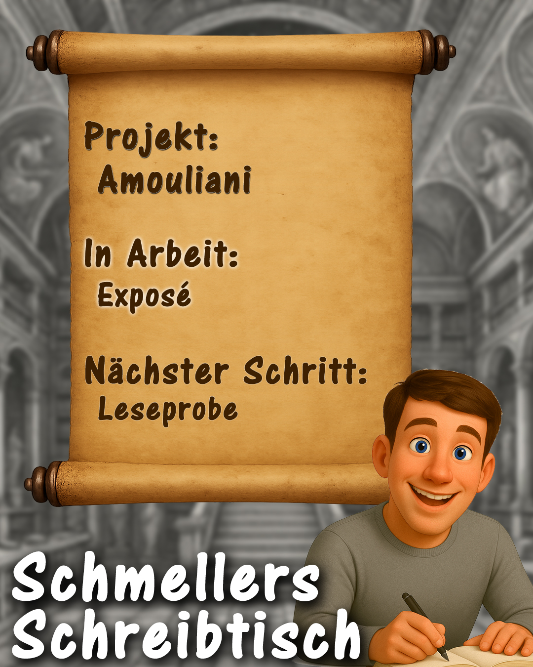 ich habe mit der Arbeit an einem neuen Projekt begonnen. Einem Fantasy-Portal-Roman mit dem Projektnamen “Amouliani”.